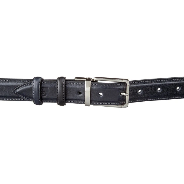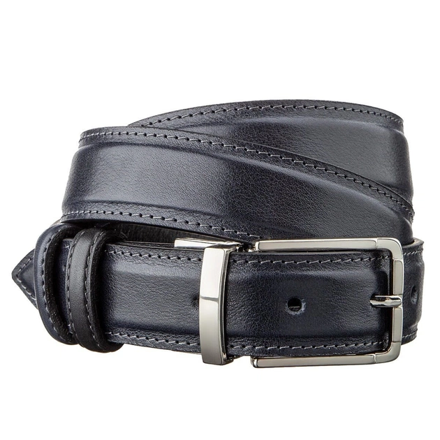 Унікальною особливістю такого ременя є те, що ви можете носити його будь-якою стороною або чорною, або синьою. Це ремінь з'єднує в собі 2 кольори в одному. Такий аксесуар просто знахідка для тих, хто не хоче купувати 2 ремені різних кольорів. Модель прошита рівним швом по краях ременя. Виробник, використовує виключно імпортну фурнітуру, яка не темніє, не дряпається і не викликає алергії. Такий шкіряний ремінь завжди доповнить гардероб як молодого юнака, так і буде гарним доповненням до образу солідного чоловіка.