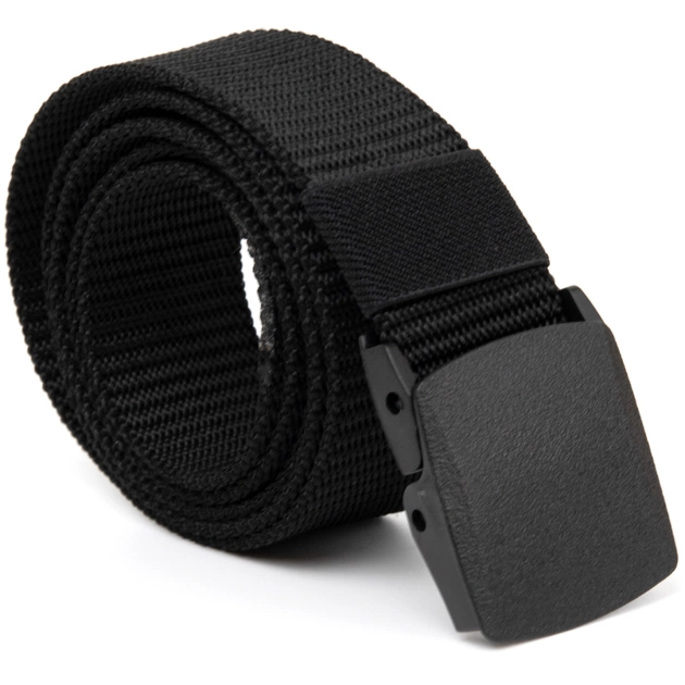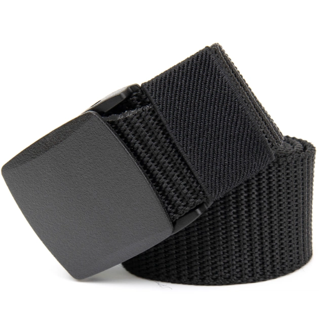 Текстильний ремінець в чорному кольорі з матовою оригінальною пряжкою. Виріб має прекрасний зовнішній вигляд і продуманий дизайн.