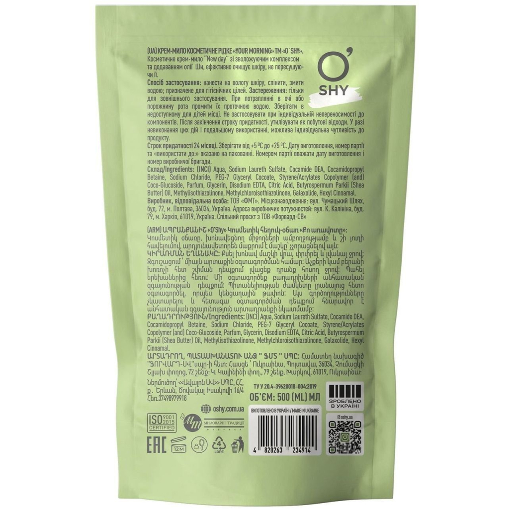 Рідке мило O'Shy Your Morning Дой-пак 500 мл (4820263234914)