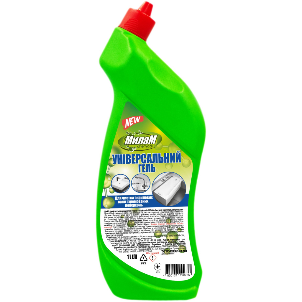 Рідина для чищення ванн Мілам Chemical Універсальний гель для чищення акрилових ванн та хромованих поверхонь 1 л (4820152290755)