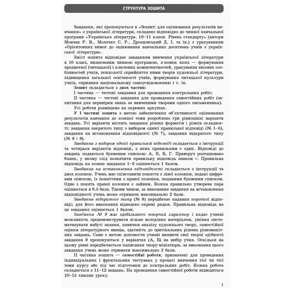 Робочий зошит Українська література. 10 клас. Для оцінювання результатів навчання - В.В. Паращич Ранок (9786170946348)
