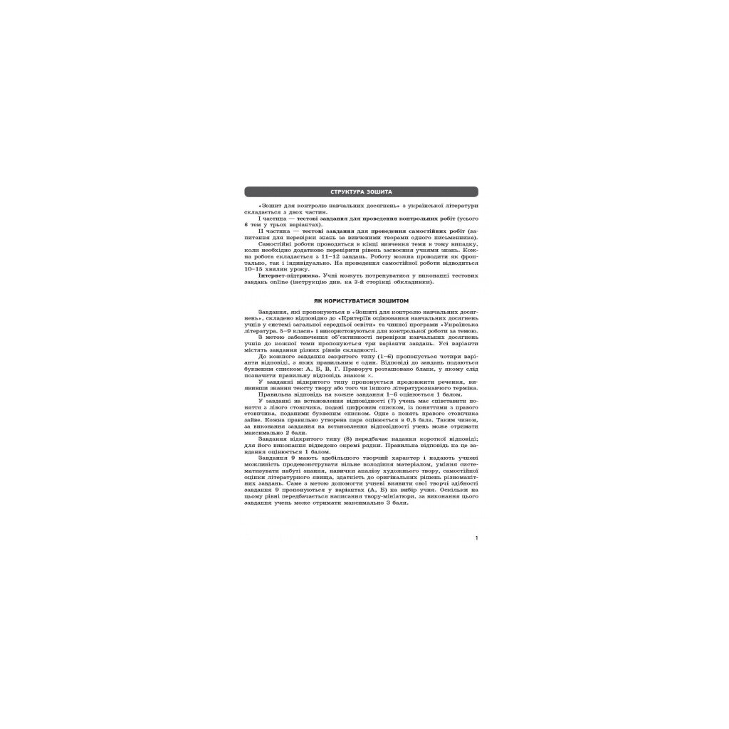 Робочий зошит Українська література. 9 клас. Для контролю навчальних досягнень учнів Ранок (9786170935625)