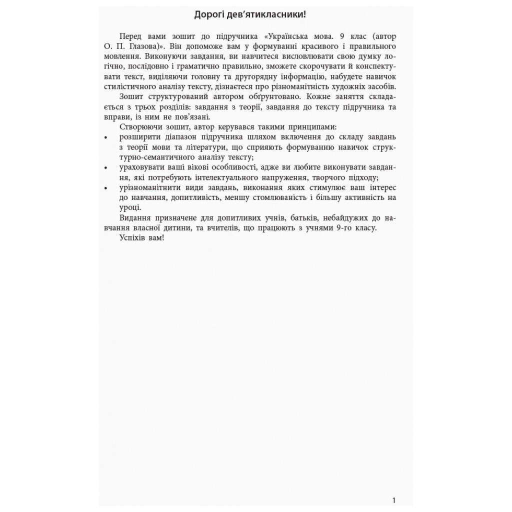 Робочий зошит Українська мова. 9 клас. З розвитку мовлення до підручника О. П. Глазової - Т.М. Шабельник Ранок (9786170947574)