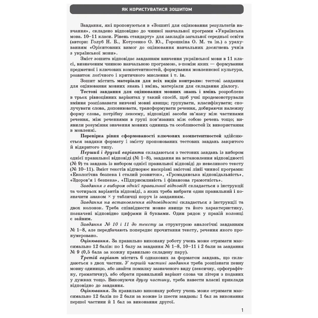 Робочий зошит Українська мова. Рівень стандарту. 11 клас. Для оцінювання результатів навчання - В.В. Паращич Ранок (9786170956750)