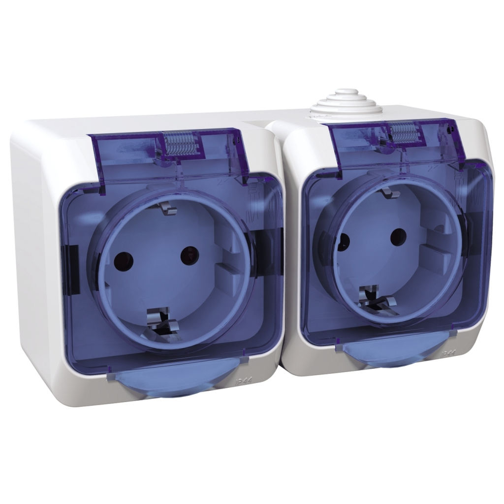 Розетка Schneider Electric CEDAR подвійна 2К+З зі шторками та прозорою кришкою біла IP44 (WDE000525)