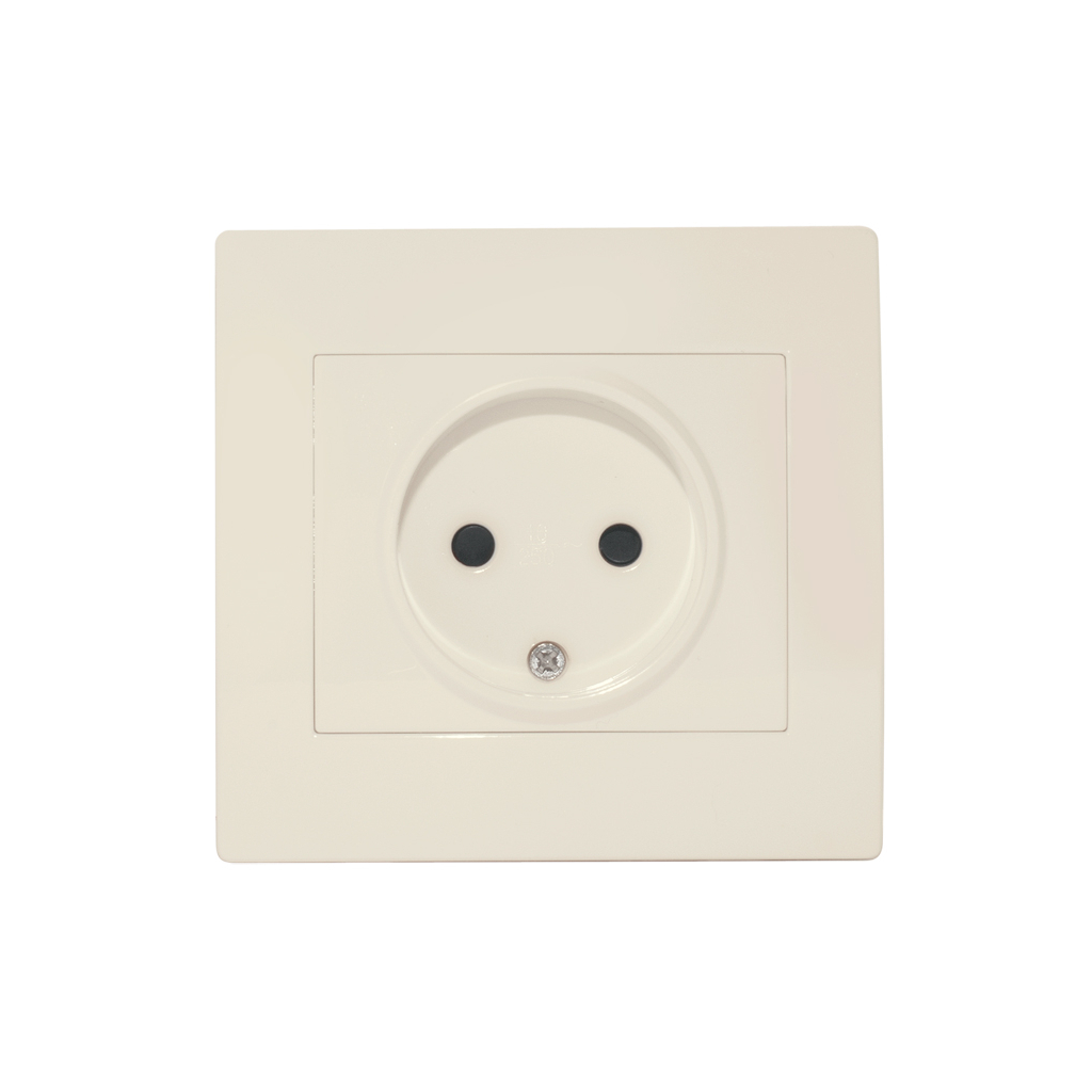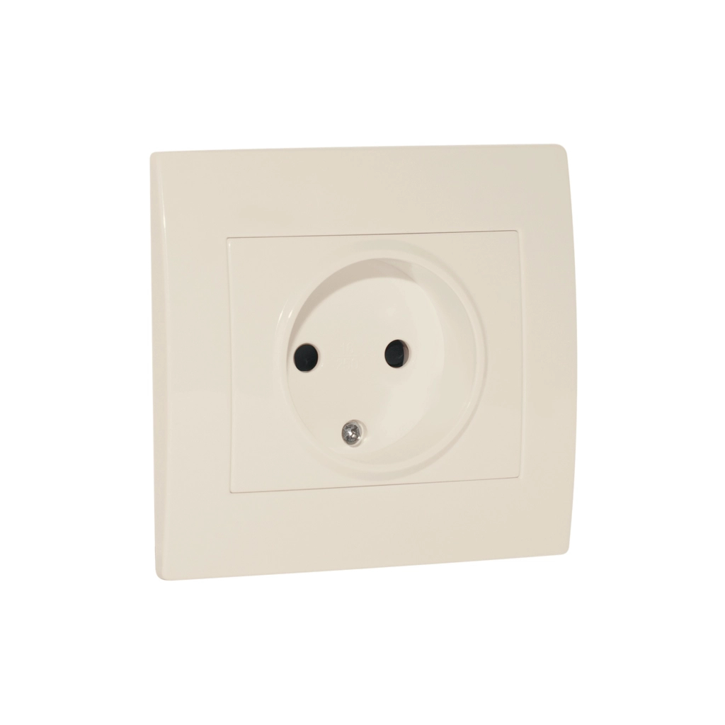 Розетка без заземлюючих контактів c захисними шторками SE-123 має захисні шторки для захисту від несанкціонованого потрапляння предметів. Величина максимально допустимого струму навантаження становить 16А.