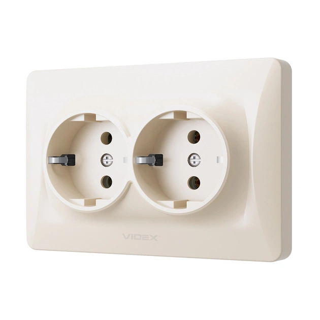 Розетка Videx BINERA 2ая із заземленням кремова (VF-BNSK2G-CR)