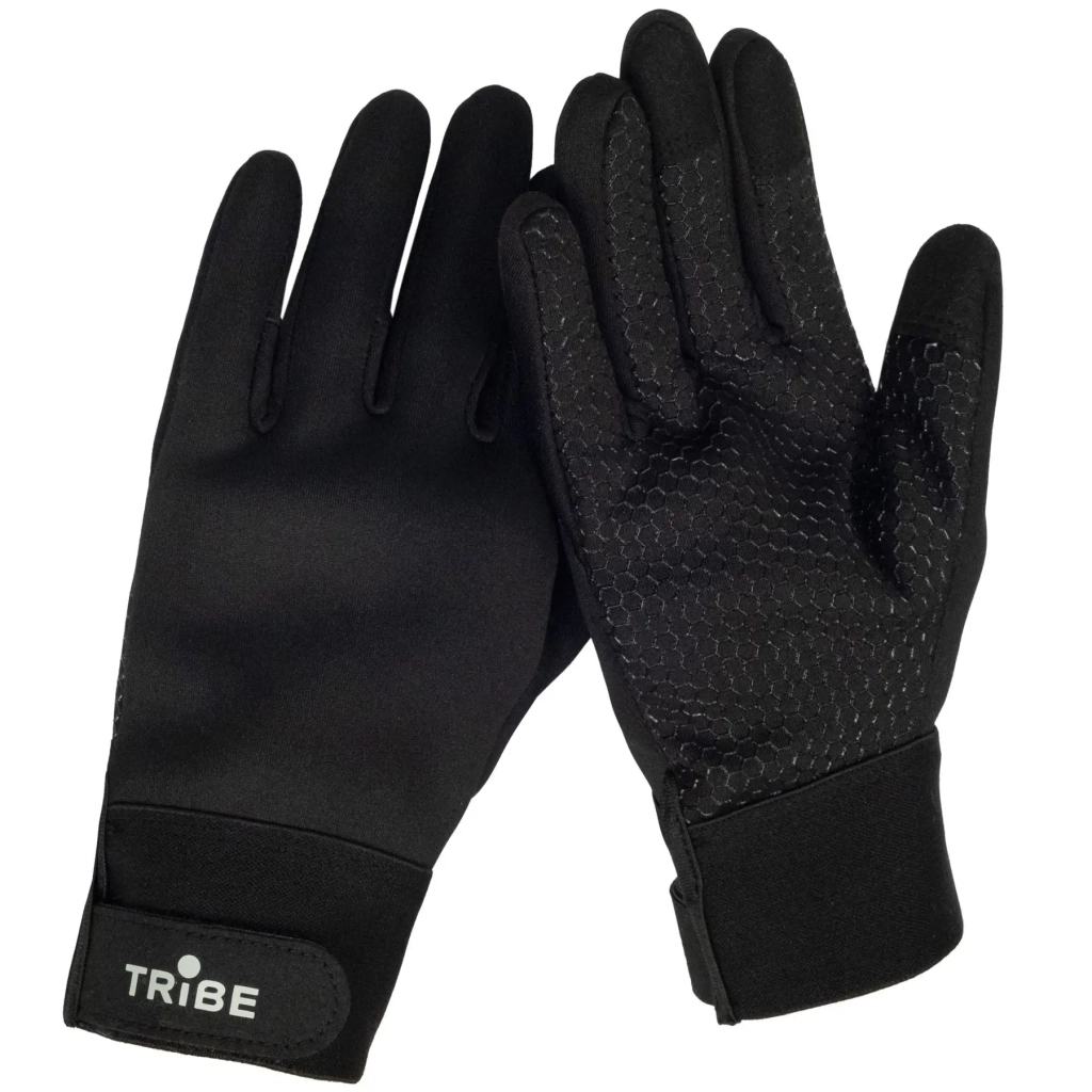 Рукавиці Tribe Wind Gloves середньої товщини, захистять ваші руки від вітру, холоду та легкої вологи. Виготовлені з еластичного неопрену, всередині утеплені мікрофлісом. Зап’ястя рукавиць мають широку резинку та липучку для регулювання прилягання. На долоні нанесено нековзкий принт, який дозволяє зручно утримувати речі в руці. На великому, вказівному та середньому пальцях є вставки сумісні з сенсорними екранами.