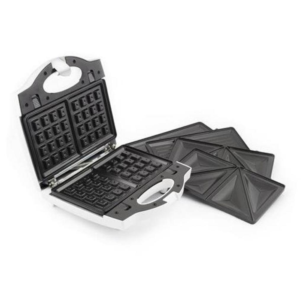 Насадки: насадка вафлі, насадка сендвічі, насадка гриль. Прилад має потужність 700 Ватт, двома індикаторами роботи, автоматичним термостатом, що забезпечує постійну підтримку температури і захист від перегріву. Насадки виготовлені з алюмінію з антипригарним покриттям, що дозволяє готувати з мінімальним використанням жирів. Корпус виготовлений з термостійкого пластика і металу.