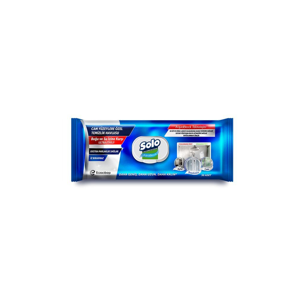 Серветки для прибирання Solo AquaBlock Вологі Для скла та дзеркал 30 шт. (8690530074590)