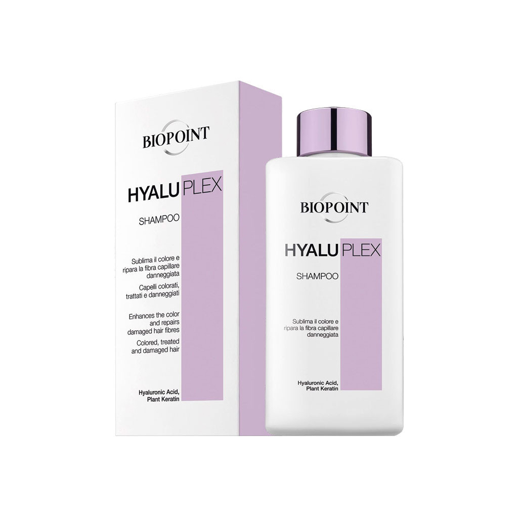 Шампунь Biopoint Hyaluplex Shampoo — ваш помічник у догляді за фарбованим і пошкодженим волоссям, створений з використанням передових технологій в Італії. Його професійна формула, в якій поєднуються гіалуронова кислота та рослинний кератин, забезпечує інтенсивне зволоження, живлення та відновлення кожної волосини, надаючи їй еластичність і природний блиск. Це створює неповторний ефект сяючого та здорового волосся з першого застосування, даруючи йому нове життя і відчуття свіжості.