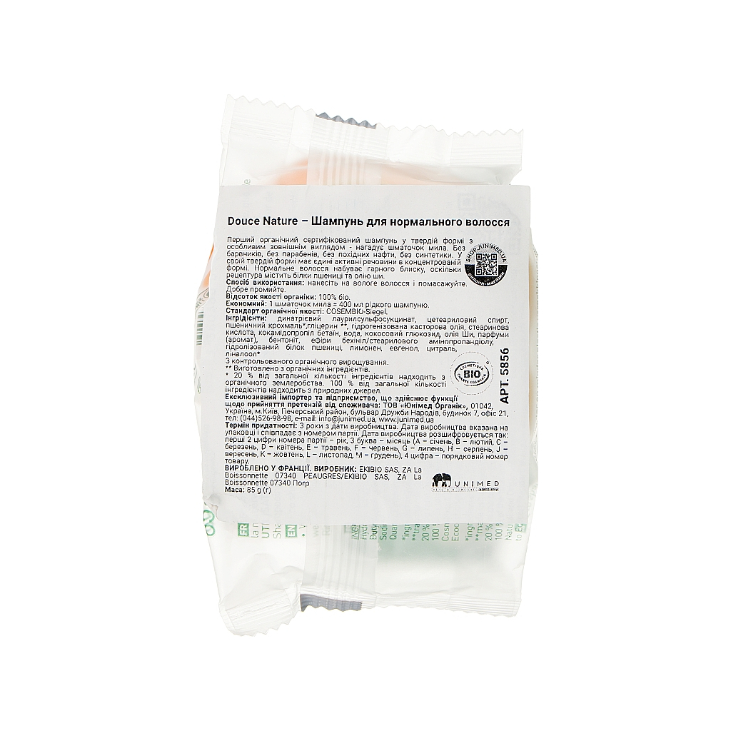 Шампунь Douce Nature Fleur De Shampoo Твердий для нормального волосся – ідеальний вибір для жінок, які цінують якість і натуральність у догляді за волоссям. Цей органічний продукт без тестування на тваринах виготовляється у Франції, приваблюючи своєю унікальною рецептурою.