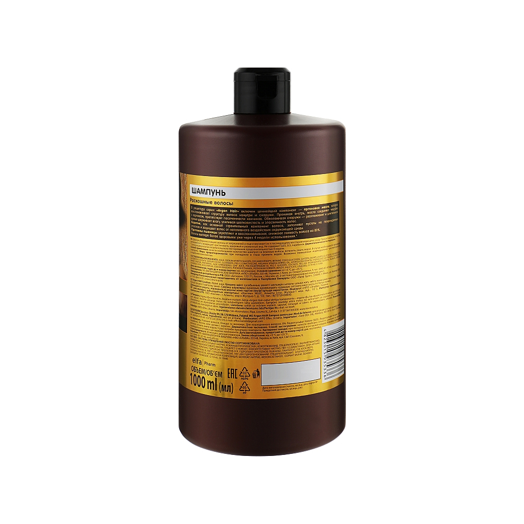 Шампунь збагачений олією ааргана, яка прекрасно живить та зволожує волосся зсередини, надає йому сили та еластичності. Чудово відновлює й захищає від зовнішнього негативного впливу. Ретельно промиває і очищає волосся та шкіру голови від забруднень, водночас добре готуючи до подальших процедур із догляду.