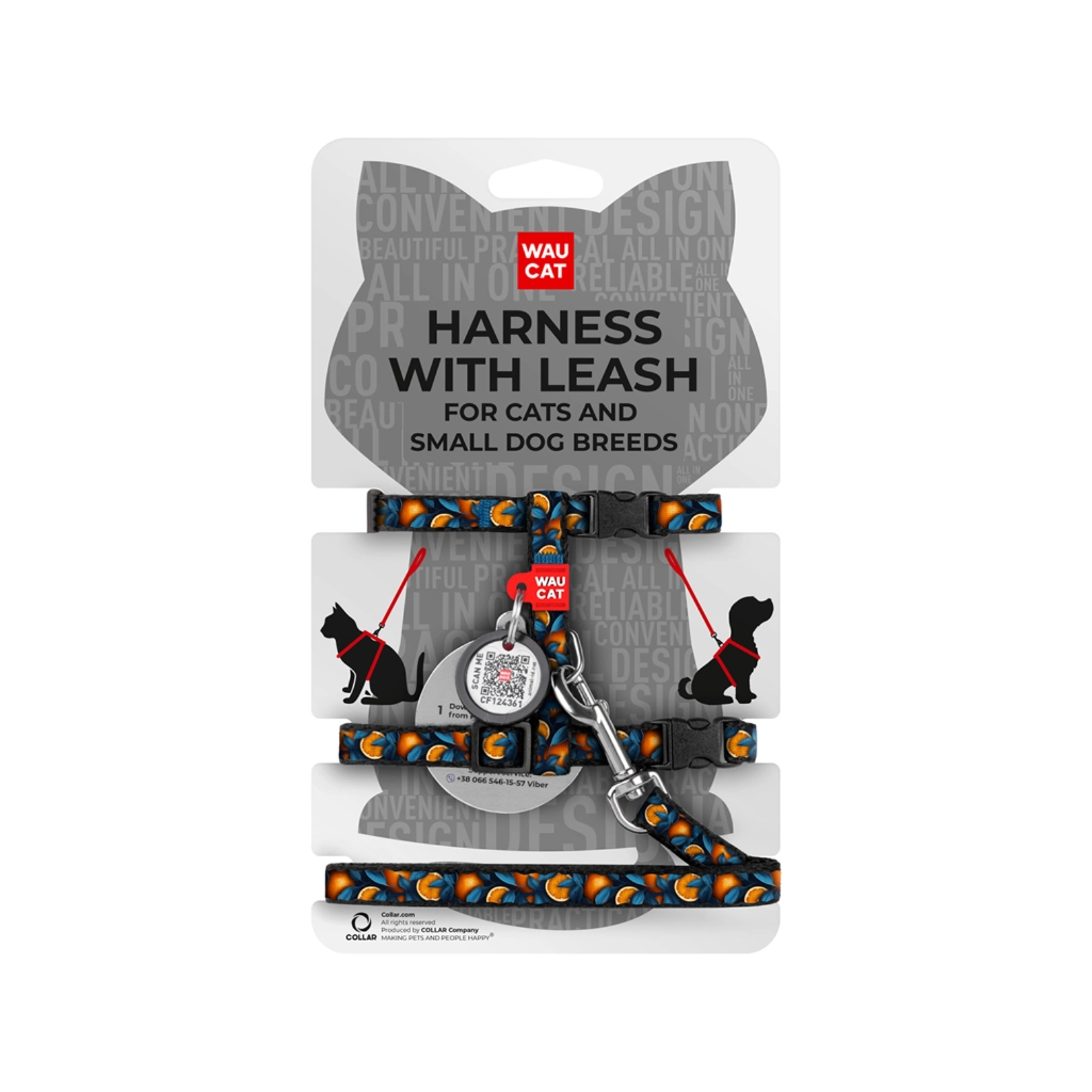 Шлея для котів Waucat Nylon з QR паспортом "Апельсини" пластиковий фастекс (329-4054)