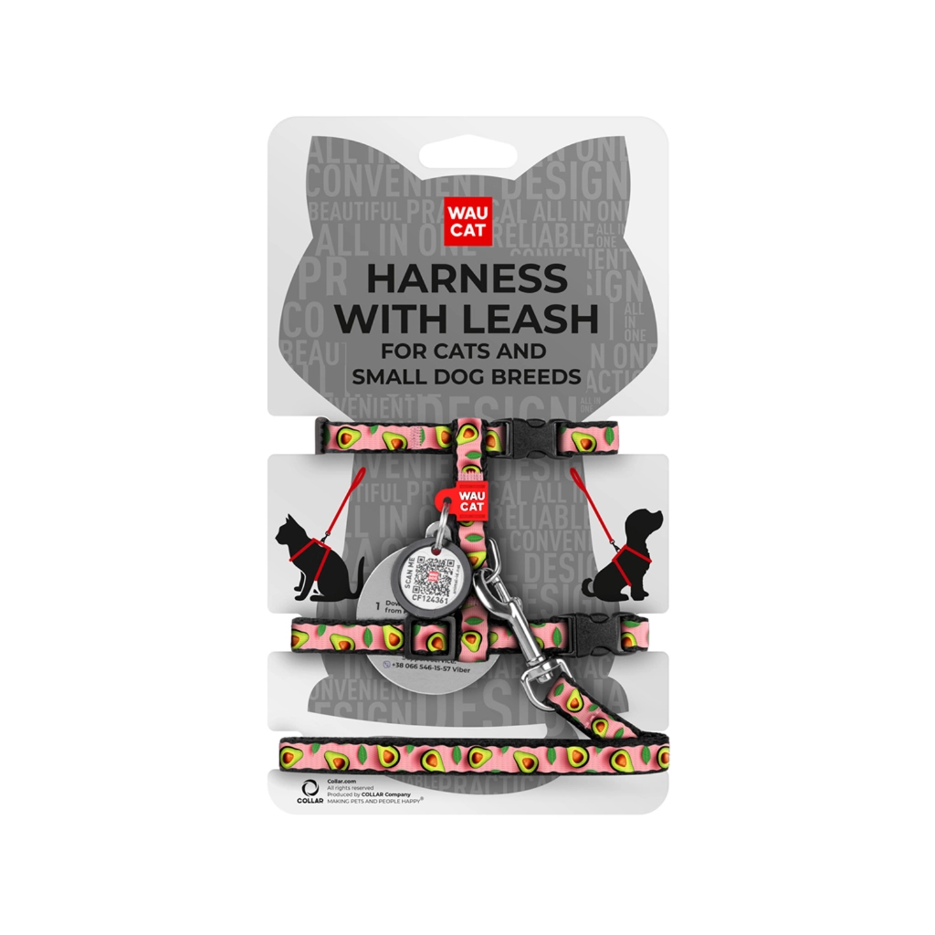 Шлея для котів Waucat Nylon з QR паспортом "Авокадо на рожевому" пластиковий фастекс (329-4051)