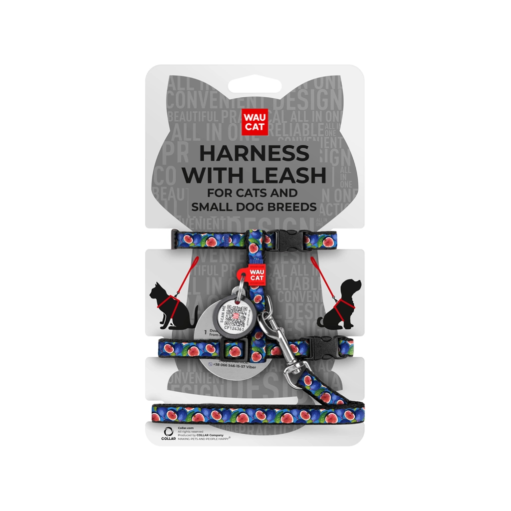 Шлея для котів Waucat Nylon з QR паспортом "Інжир" пластиковий фастекс (329-4053)