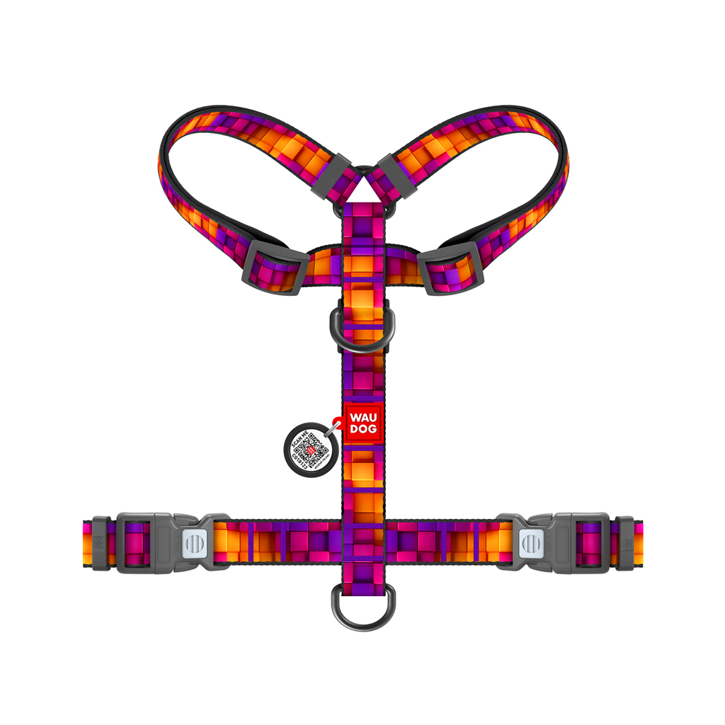 Шлея для собак WAUDOG H-подібна анатомічна Nylon з QR адресником "Куби 3Д" пластиковий фастекс XL (347-4057)