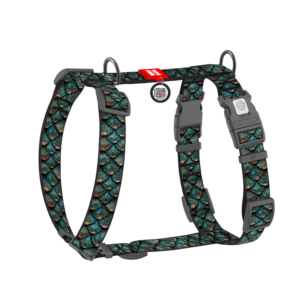 Шлея для собак WAUDOG H-подібна анатомічна Nylon з QR адресником "Луска" пластиковий фастекс S (343-0179)