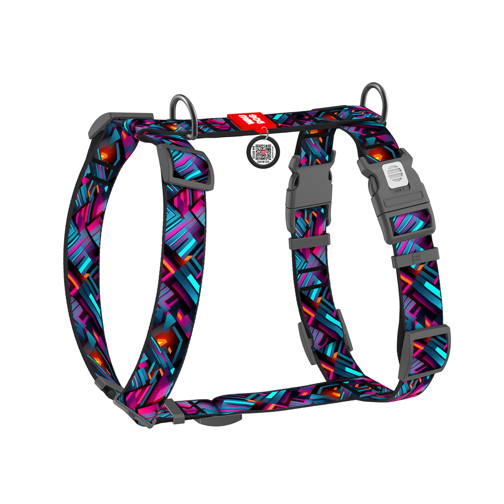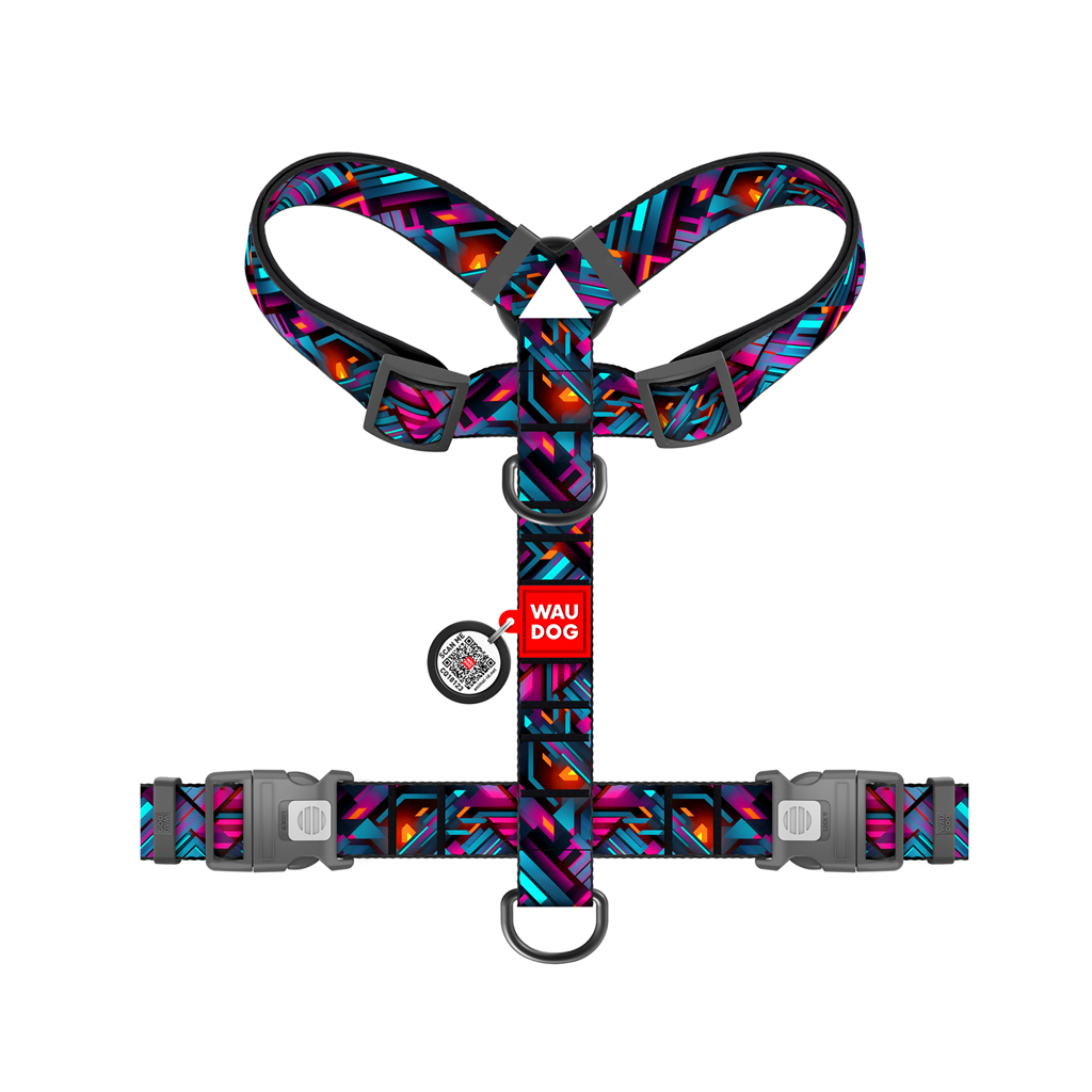 Шлея для собак WAUDOG H-подібна анатомічна Nylon з QR адресником "Нескінченні світи" пластиковий фастекс S (343-4058)