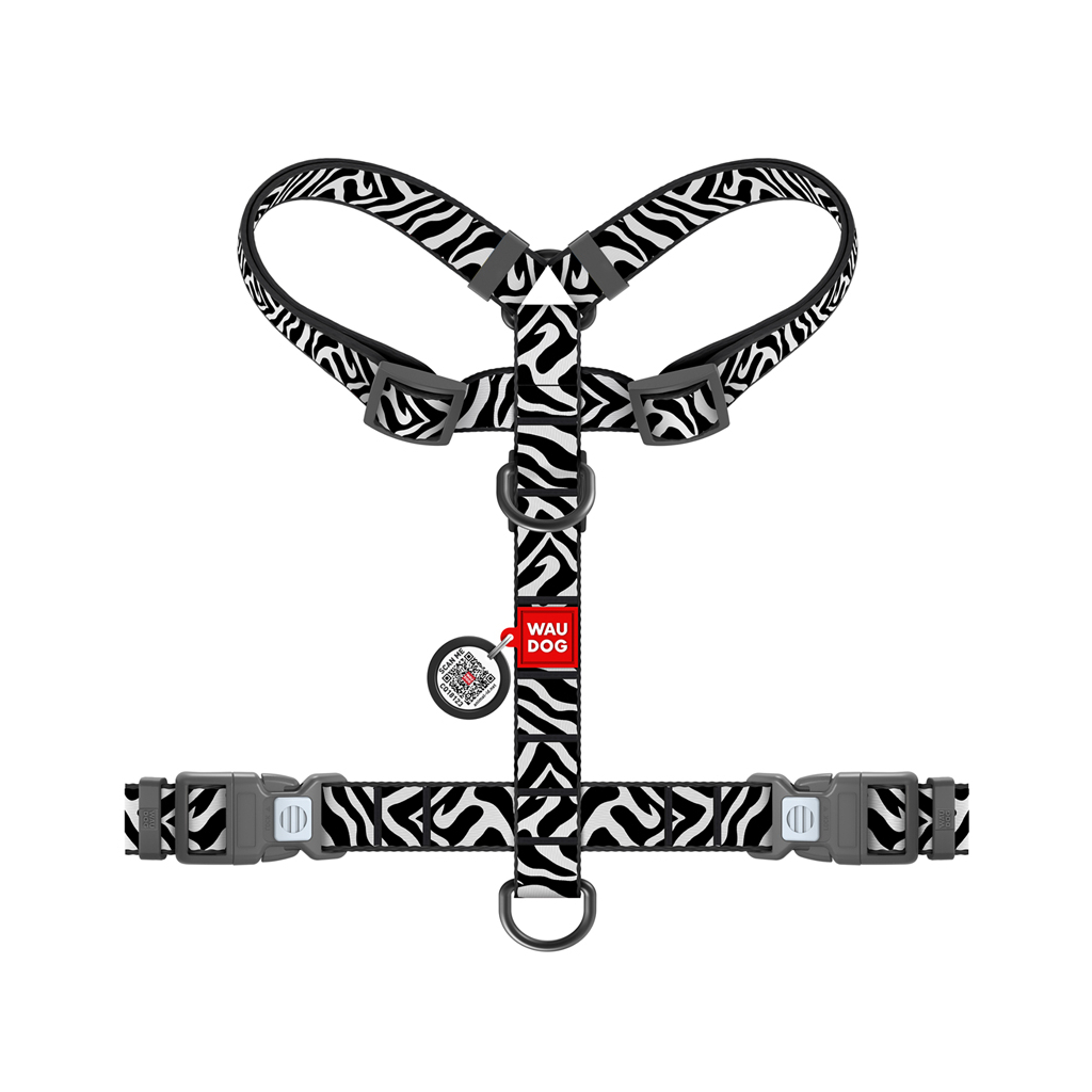 Шлея для собак WAUDOG H-подібна анатомічна Nylon з QR адресником "Зебра" пластиковий фастекс М (344-0055)