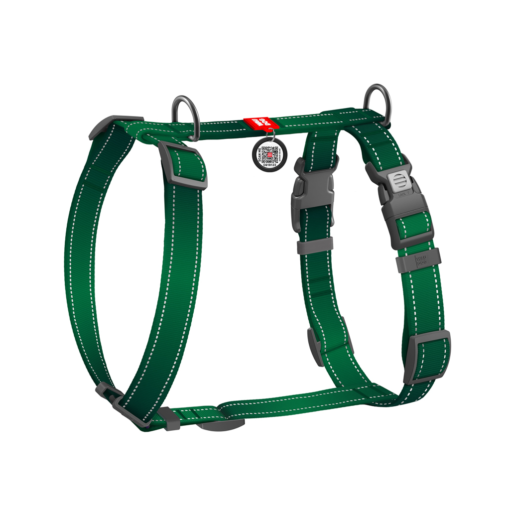Шлея для собак WAUDOG Nylon Mono H-подібна з QR паспортом, світловідбивна, S зелена (545618)