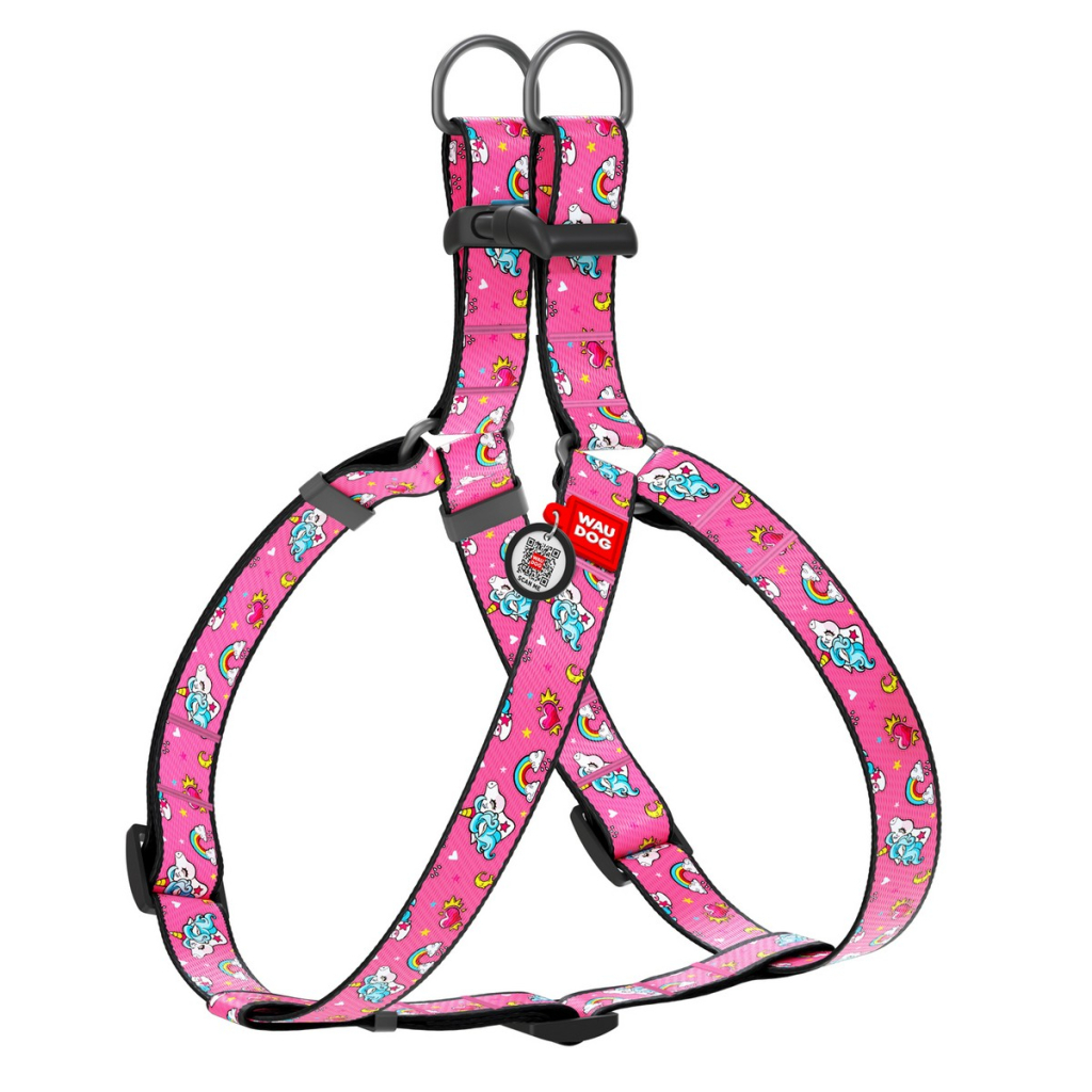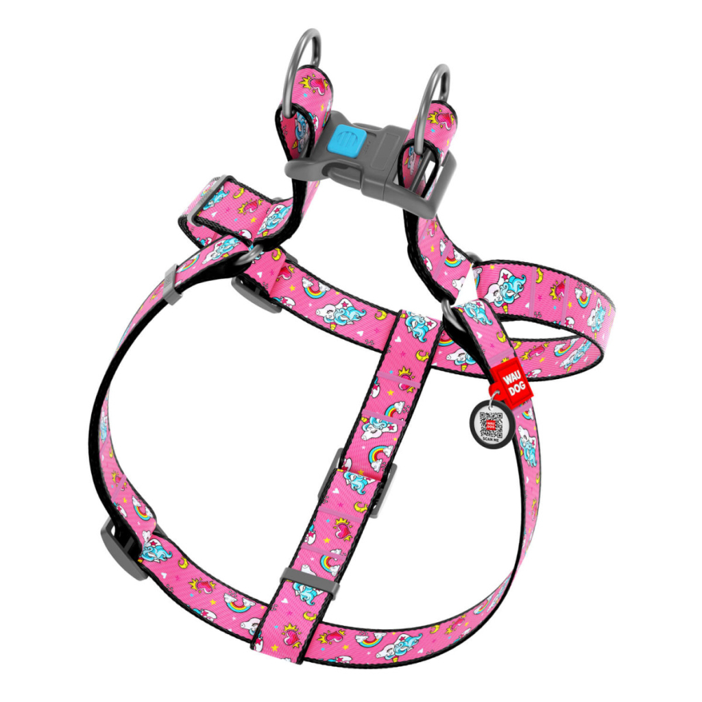 Шлея для собак WAUDOG Nylon з QR паспортом анатомічна "Єдиноріг" M (5028)