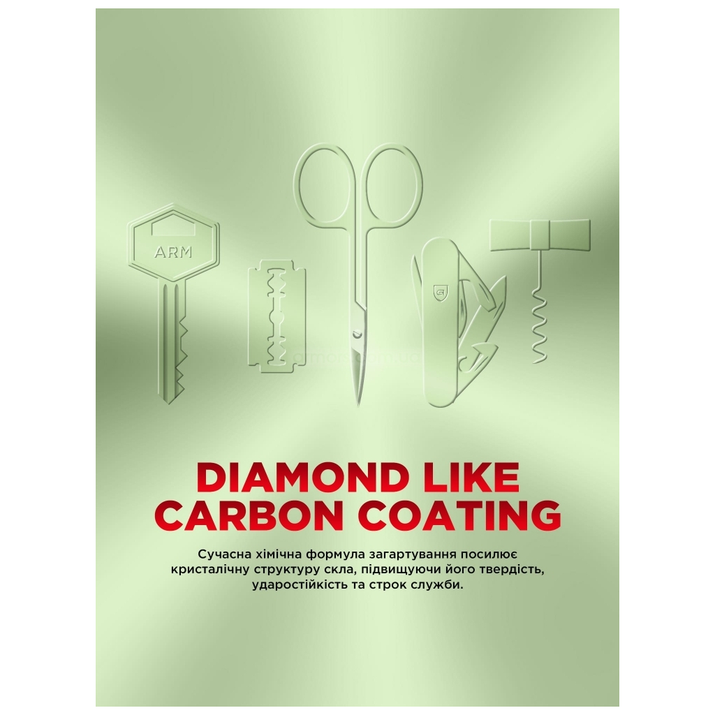 Алмазоподібне вуглецеве покриття створює підвищену стійкість, яка відчувається у дрібницях: навіть після зустрічей із ключами чи металевими предметами поверхня залишається рівною. Там, де стандартні моделі починають тьмяніти по краях, це скло зберігає чисту оптику та гладку фактуру — день за днем, без приводу замислюватися про заміну.