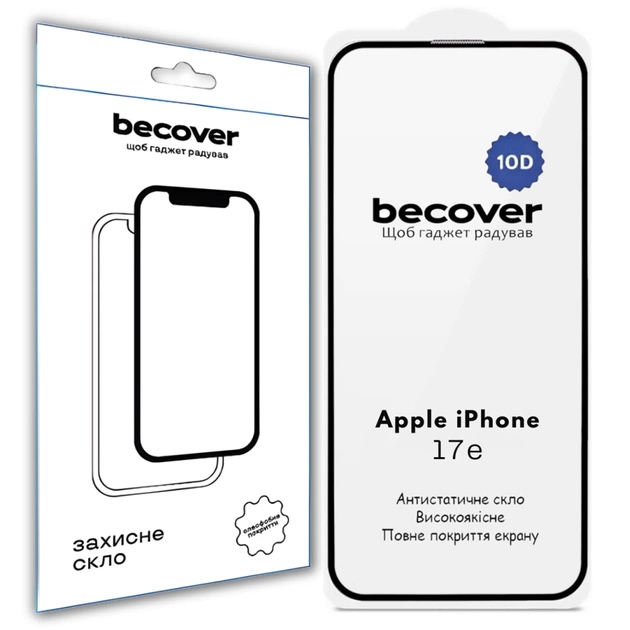 Скло захисне BeCover 10D Apple iPhone 17e Black (715142)
