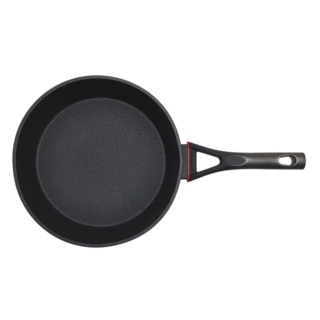 Сковорода POLARIS PRO collection-28FP (16233) виготовлена ​​з високоякісного кованого алюмінію. Товщина алюмінію складає 4 мм. Термостійке зовнішнє покриття гарантує простоту догляду за сковородою. Інноваційне 3-х шарове антипригарне покриття з мікровкрапленнями забезпечує неперевершену стійкість до подряпин та легкість приготування продуктів. Високий борт у сковороди забезпечує рівномірний прогрів та зберігає корисні властивості продуктів. Сковорода поставляється без кришки і має ергономічну бакелітову ручку з покриттям Soft Touch, вона не нагрівається під час приготування продуктів і не ковзає в руках. Завдяки міцному антипригарному покриття можна використовувати металеві кухонні аксесуари. Підходить для всіх типів плит, включаючи індукційні.