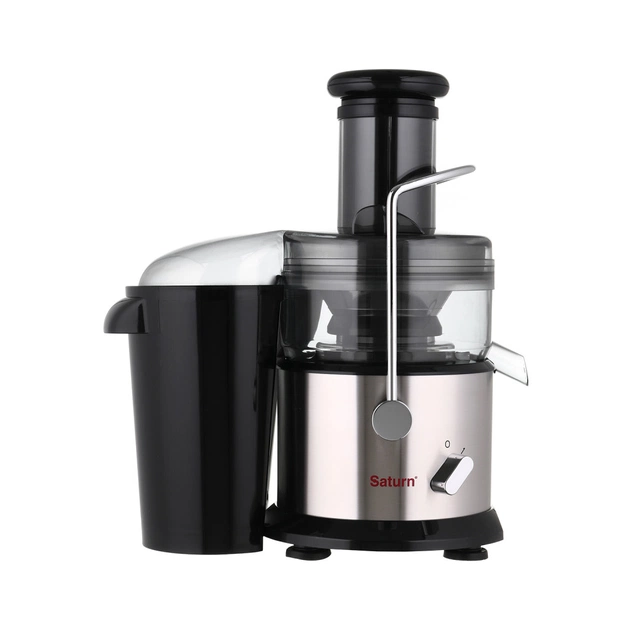 Міцний металевий корпус має бездоганний вигляд, стійкий до зносу і простий в очищенні. Спеціальні ніжки з прогумованими накладками забезпечують хорошу стійкість на будь-якій поверхні. Робочі вузли з нержавіючої сталі - це можливість сміливо працювати з будь-якими продуктами. Хімічно нейтральний матеріал не схильний до корозії та окислення і не впливає на смак, колір і аромат майбутнього напою. Зручний прозорий контейнер полегшує контроль рівня вмісту.Широкий завантажувальний люк дає можливість багато видів продуктів завантажувати цілком, не розрізаючи. Спеціальний дрібнопористий фільтрувальний кошик гарантує отримання бездоганно прозорого, чистого соку без домішок м'якоті та макухи. Механічна система управління дає змогу легко і швидко вибрати потрібний режим. Залежно від складності продукту можна вибрати швидкість обробки на 1 або 2 ступені. При цьому навіть на максимальних обертах, при вищій швидкості в 800 Вт соковижималка працює відносно тихо і не створює дискомфорт для оточуючих.