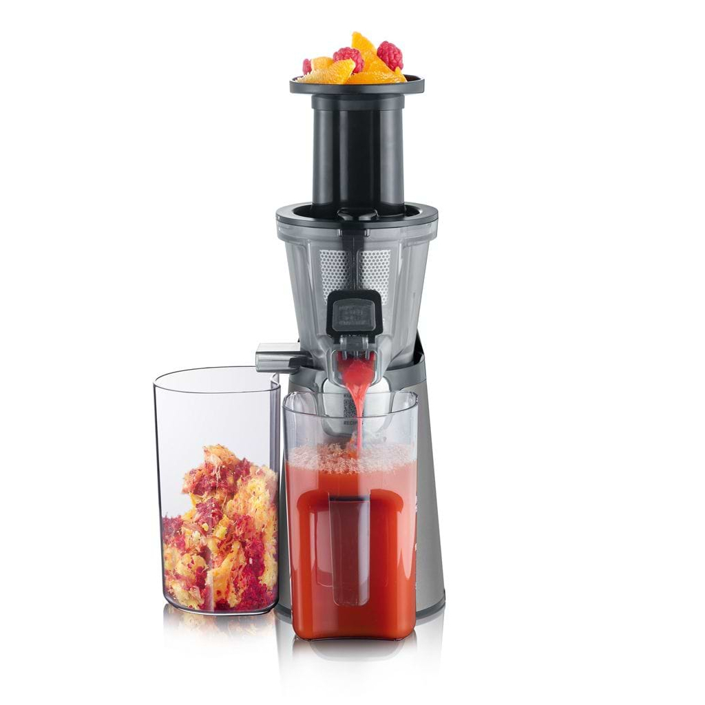Соковижималка SEVERIN ES 3571 (ES3571) відноситься до шнекових моделей. Такі соковижималки працюють на шнеку - спіральній деталі з ребрами, яка здійснює переміщення і стискання плодів. Підходять для будь-якого типу інгредієнтів. Вельми енергоефективні за рахунок невеликої швидкості обертання. Якщо ви хочете якісно відокремити макуху, то цей варіант пристрою буде найкращим, тому що дозволяє отримати максимально суху тверду частину продукту і прозорий сік.
