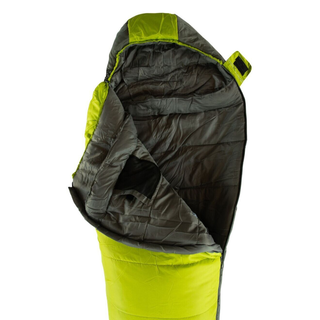 • анатомічно розширена зона для ніг 3D Footbox. Нижня частина спальника має спеціальну трапецієподібну форму, яка створює простір для ваших ніг, забезпечуючи їх вільне розміщення в природному положенні, забезпечуючи більший комфорт під час сну, а також більше збереження тепла.