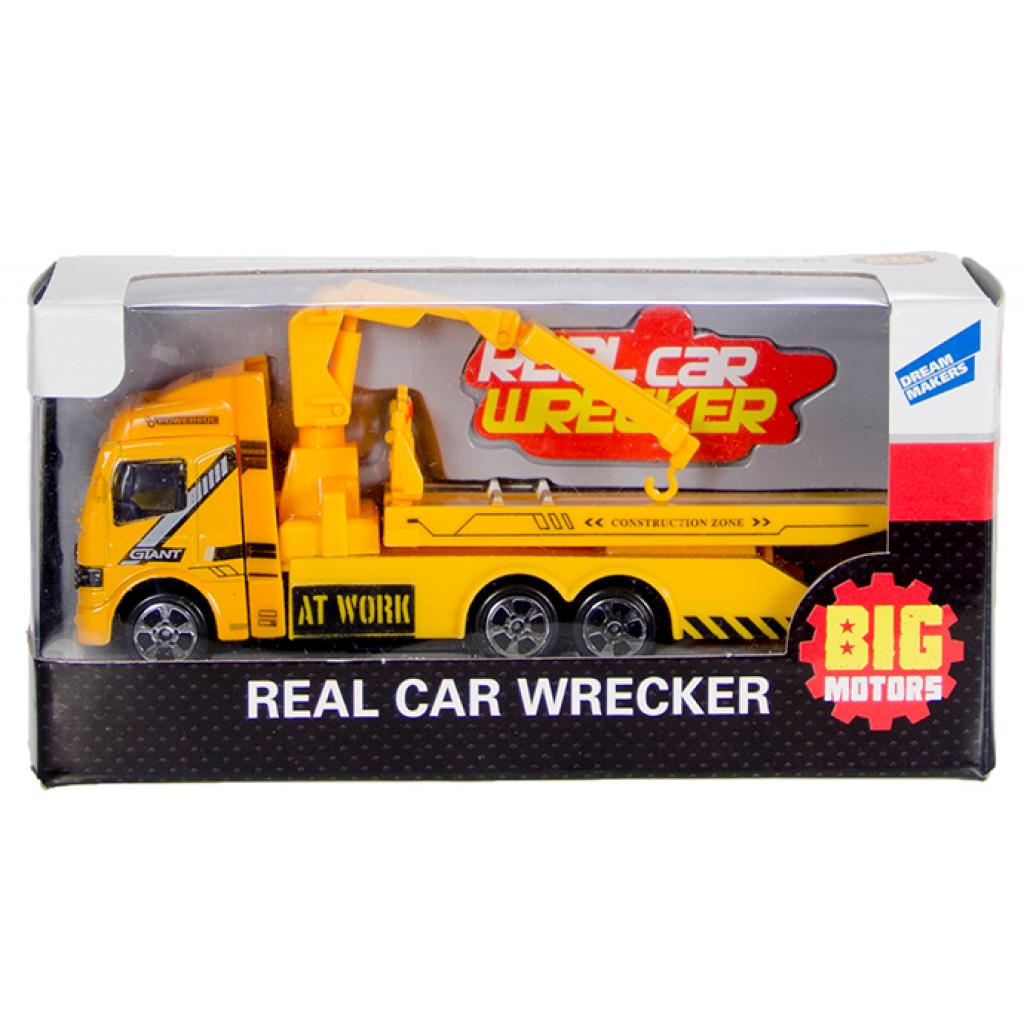 Власний автомобіль-евакуатор, поза всяких сумнівів, необхідний кожному малюкові, у якого є автопарк з іграшкових автомобілів. З його допомогою можна не тільки проводити транспортування різних машинок, але при необхідності переміщати інші великогабаритні вантажі. Евакуатор від торгової марки Big Motors має невеликі розміри - 6х14 сантиметрів, що дозволяє перевозити всілякі мініатюрні машинки. Евакуатор володіє додатковою функціональністю - його кран-стріла зроблена обертається, а також є висувна платформа для зручної завантаження машини. Модель евакуатора виготовлена з яскраво-жовтою пластмаси з декоративними друкованими елементами на бортах автомобіля. Торгова марка Big Motors - власність компанії з Білорусі під назвою Dream Makers, яка представляє на ринку величезний вибір дитячого продукції, як власного виробництва, так і імпортованої з Китаю.