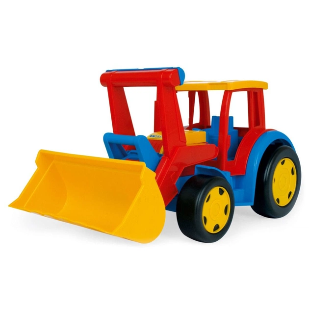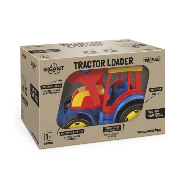 Великий іграшковий трактор Гігант із ковшем — яскрава та функційна машинка з серії Гігант від Wader, яка відома своєю великою вантажопідіймальністю. Такі машинки можна не тільки возити, а і їздити на них. Це дитина може робити самостійно, відштовхуючись ніжками, або його може везти хтось із батьків, попередньо прив'язавши до машинки шнурок. Тримаючись за зручну ручку, дитина почуватиметься в безпеці під час катання.