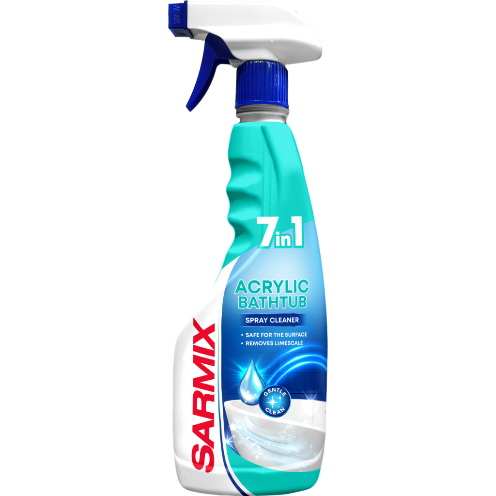 Засіб Sarmix 7 in 1 Acrylic Bathtub Cleaner Spray забезпечить безпечне та ефективне очищення акрилових ванн, душових кабін та джакузі. Також підходить для: емальованих ванн, раковин, кахлю та кераміки, хромованих, нікельованих поверхонь. Завдяки концентрованій формулі ефективно видаляє бруд, мильний наліт та вапняні відкладення.