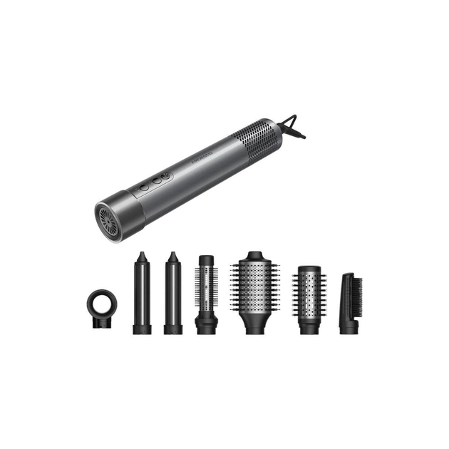 Потужний пристрій (1 200–1 400 Вт) оснащено високопродуктивним BLDC-двигуном (110 000 об/хв), функціями іонізації, автоматичного очищення та Cool Shot для фіксації укладання. Передбачено 3 швидкості, 3 температурні режими і 7 змінних насадок: фен, ліво- та правосторонні насадки для завивання, циліндричні насадки 33 мм, 50 мм і овальну 70 мм для локонів та хвиль, а також щітку для розгладжування волосся.