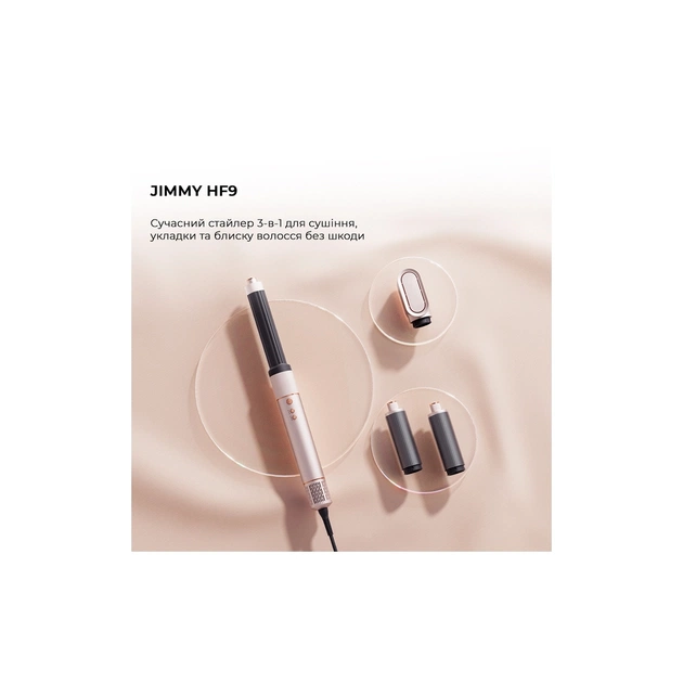 JIMMY Hair Multi-styler HF9 — це універсальний 3-в-1 пристрій для догляду за волоссям, що поєднує функції фена, плойки та щітки. Оснащений потужним цифровим мотором на 1300 Вт, який розвиває швидкість до 110 000 обертів за хвилину, забезпечуючи потік повітря до 23 м/с для швидкого та ефективного сушіння волосся. Завдяки цим характеристикам, JIMMY Hair Multi-styler HF9 є відмінним вибором для тих, хто прагне професійного догляду за волоссям у домашніх умовах.