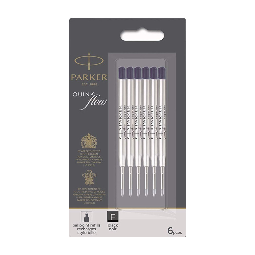 Стержень кульковий Parker набір QuinkFlow черний F блистер 6шт (10 231BK6)