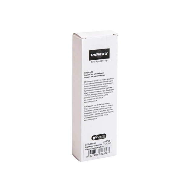 Ручкою, яка ідеально лежить в руці і дарує приємні відчуття під час письма, можна користуватися нескінченно довго, просто міняючи стержні. Стержень кульковий UXB-117 з пишучим вузлом преміум класу та інноваційним чорнилом Visco Fluid Ink, які забезпечують суперм’яке письмо, дають яскраві й насичені лінії навіть при легкому ковзанні без зусиль. Масляне чорнило кулькового стержня має підвищену в’язкість, завдяки чому накреслені лінії виходять акуратними, письмо - неймовірно гладким, а довжина письма - набагато більша у порівнянні зі звичайним масляним чорнилом. Пишучий вузол 0,7 мм, довжина письма 2000 м. Довжина стержня 134 мм. Підходить до ручки Maxflow, Maxflow-2. Колір чорнила: чорнийй.
