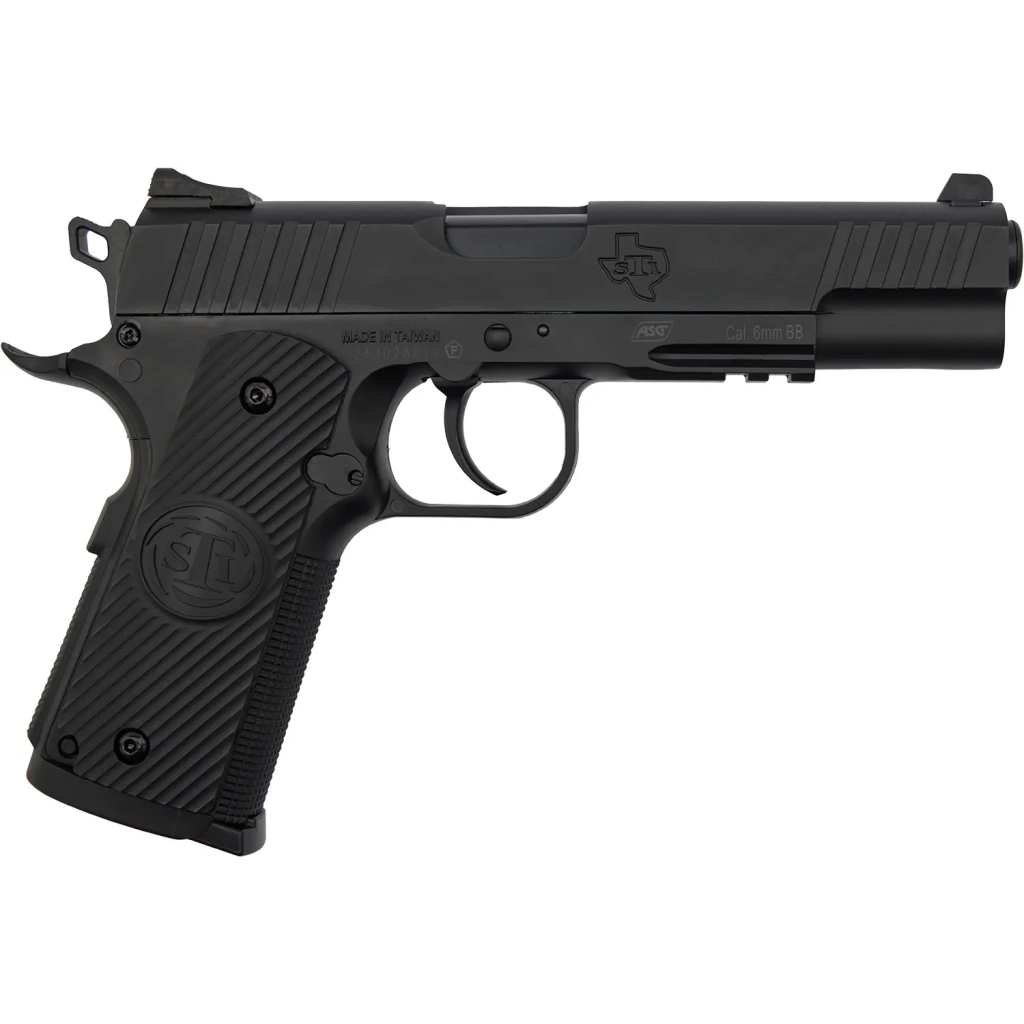 Дана модель ASG повністю повторює зовнішній дизайн пістолета Duty One американського виробника STI International. Своєю чергою STI створювала свій пістолет, базуючись на класичній моделі Colt 1911, трохи змінивши дизайн і додавши кілька удосконалень. Наприклад, інтегрований профіль Weaver для встановлення ліхтаря або лазерного цілевказівника і змінена руків'я для зручності утримання. ASG зберегла не тільки ці деталі, але і можливість перекручування металевого кожуха-затвора і функцію затворної затримки.