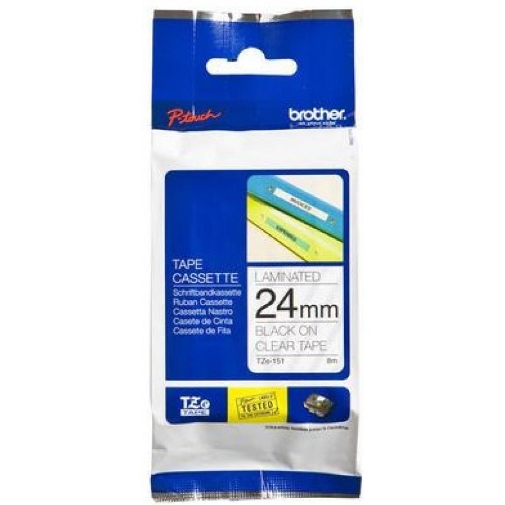 Стрічка для принтера етикеток Brother TZE151, 24мм, черный на прозрачном (TZE151)