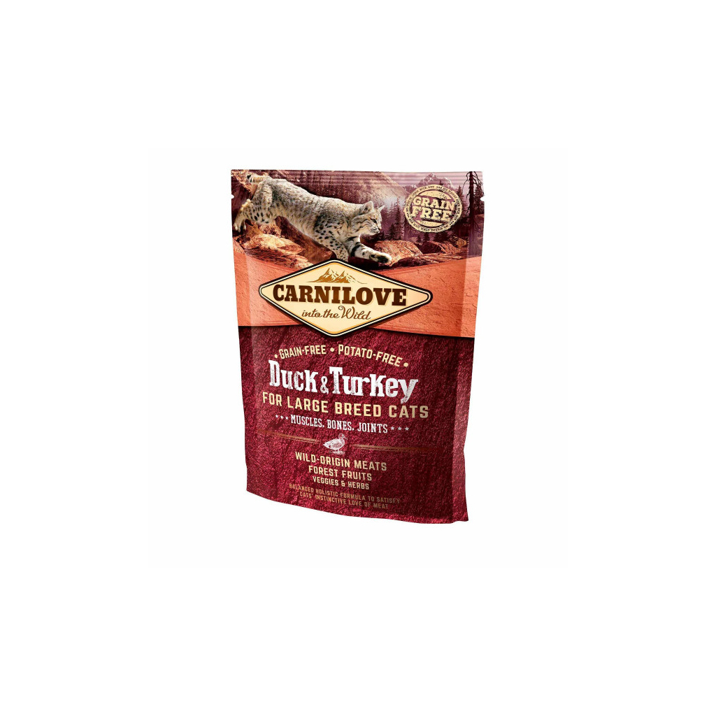 Сухий корм для кішок Carnilove Cat Large Breed 400 г створений спеціально для великих і гігантських порід, які заслуговують на найкраще. Цей холістичний корм преміум-класу забезпечує вашого улюбленця всіма необхідними поживними речовинами, завдяки ретельно підібраному складу. Основними інгредієнтами є індичка та качка, багаті на добре засвоювані білки та незамінні амінокислоти. Відсутність зернових компонентів гарантує природність і легкість засвоєння корму, що особливо важливо для кішок з чутливою системою травлення.