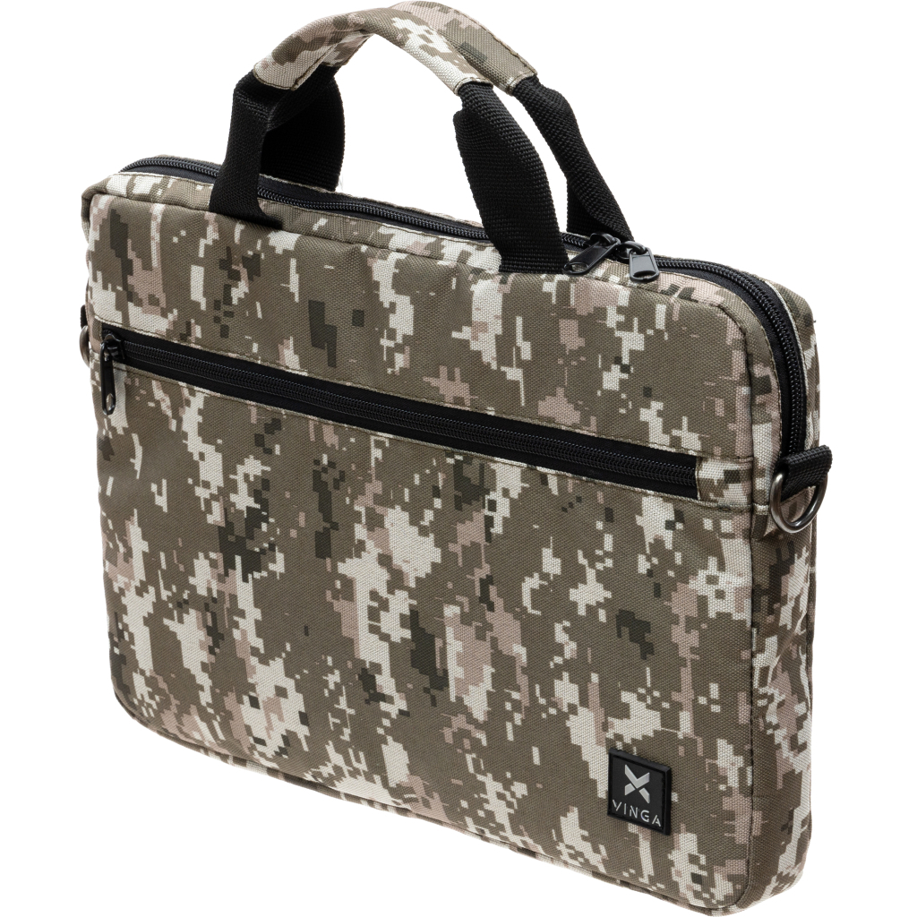 Сумка для ноутбука Vinga 14" NB1401 pixel (NB1401PX) — це ідеальний вибір для тих, хто цінує стиль та функціональність у повсякденному житті. Призначена для ноутбуків з діагоналлю до 14 дюймів, ця класична сумка допоможе вам зберігати ваші речі в порядку й безпеці. Елегантний колір хакі надає їй особливого шарму та відчуття сучасності, що привертає увагу з першого погляду. Виготовлена з високоякісного поліестеру, пачка демонструє водонепроникні властивості, що забезпечує надійний захист вашого обладнання навіть у непередбачуваних погодних умовах.