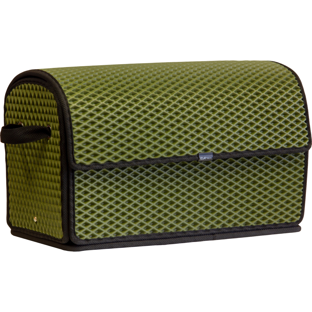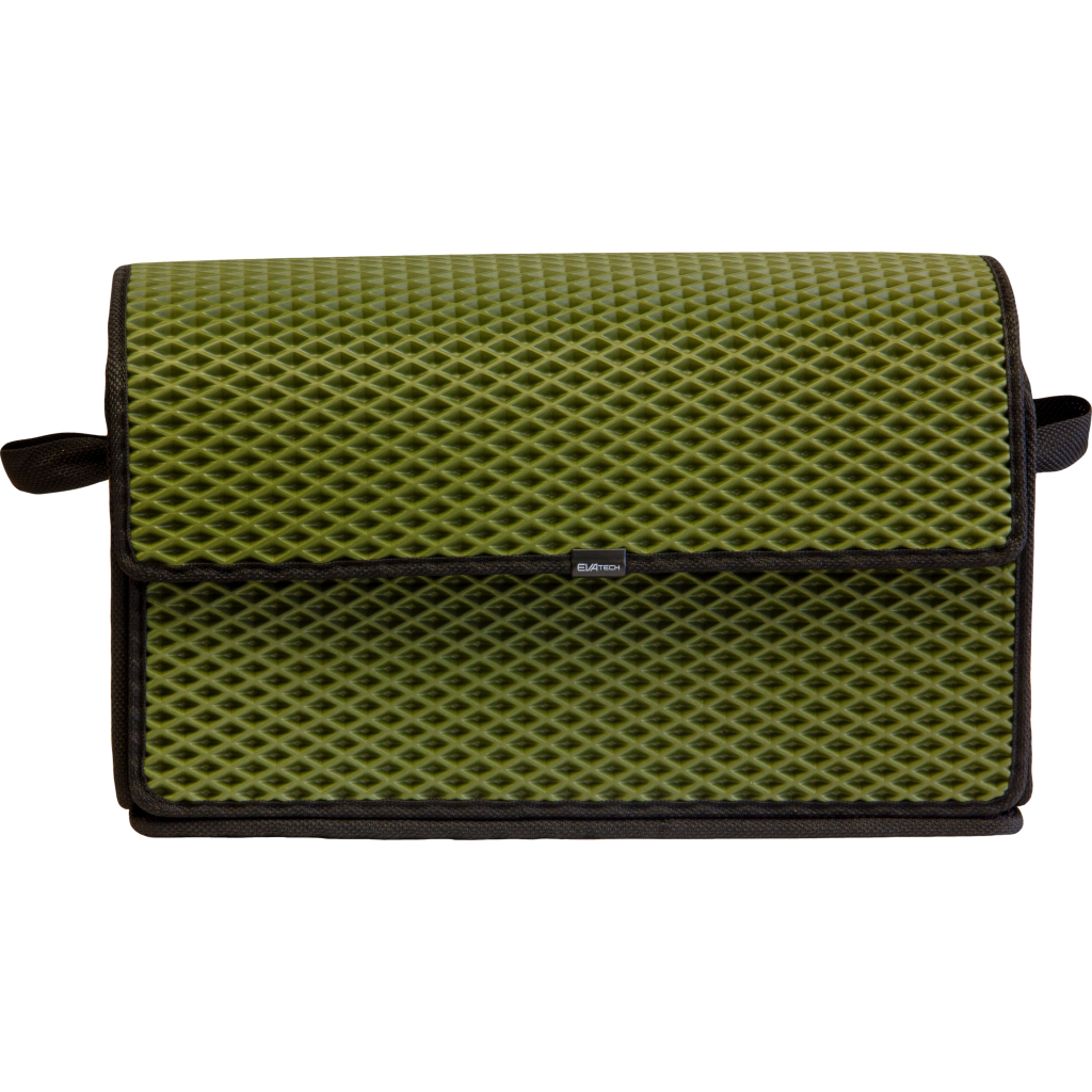 Сумка-органайзер від EVAtech у багажник авто, хакі з чорним кантом. Органайзер від EVAtech з відмінними характеристиками міцності: витримують перепади температур від +50 до -50 градусів, не вступають у взаємодію з різними хімічними реагентами та стійкі до механічного впливу.