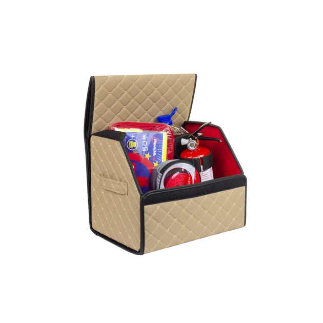 Органайзер EVAtech ECO легкий і зручний у використанні, швидко складається і фіксується на міцні липучки. Всередині з обох боків вшиті резинки для фіксації речей, ззовні по бокам сумка оснащена двома ручками для зручного транспортування. Додатково використано систему липучок на дні та збоку для надійної фіксації органайзера у багажнику.