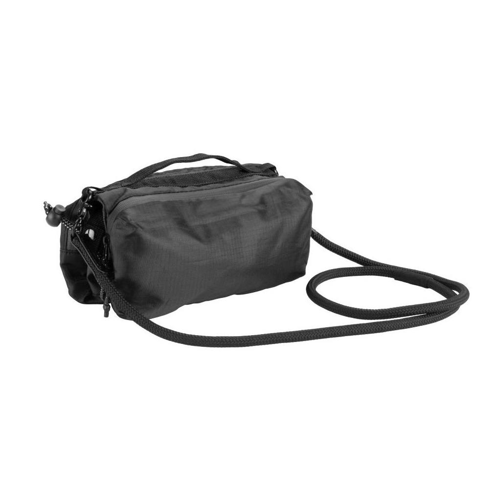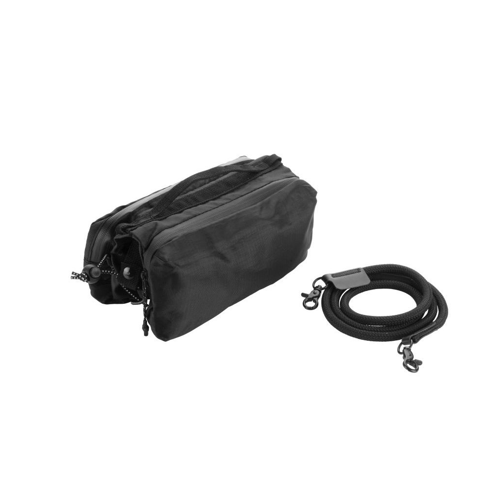 Сумка через плече Schwarzwolf Kailas – це компактна модель, призначена для найпотрібніших невеликих речей, пляшки або парасолі. Сумка містить дві основні кишені на блискавці. В одній – два невеликі відділення для кредитних карт і одна сітчаста кишеня. В іншій – два відділення для навушників та інших дрібниць і одна кишеня з карабіном. Центральна зона між основними кишенями щільно прилягає до гумового кріплення для утримання пляшки. Прогумовані боки не пропускають вологу в основне відділення, якщо туди покласти мокру парасольку. Шнур сумки знімний з карабінами. Може використовуватися як шнурок для телефону. Сумка виготовлена з переробленого поліестеру. Розміри моделі – 25 × 10 × 11 см. Вага – 165 г.