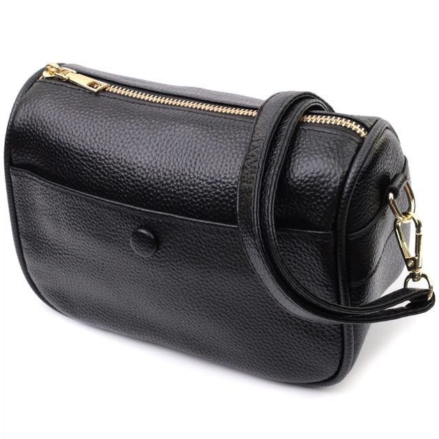 Зручна жіноча сумка на всі випадки із натуральної якісної шкіри. Аксесуар складається з основного відділення, яке закривається на блискавку, а також двох кишень зовні на лицьовій та тильній стороні. Носити сумку можна в руці, під рукою, на плечі і через плече, для цього є шкіряний ремінь, що знімається. В аксесуарі використано якісну фурнітуру золотистого кольору. Відмінний варіант для подарунка близьким та дорогим дівчатам та жінкам.