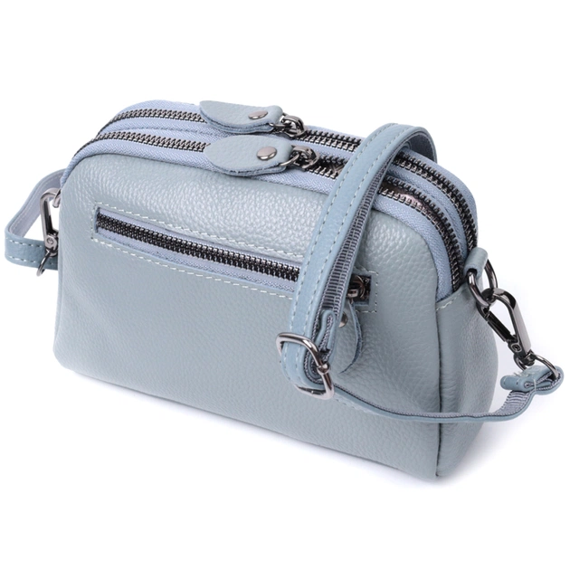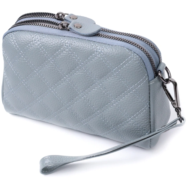 Стильна сумка для жінок із натуральної шкіри високої якості. Виріб дуже зручний, можна носити на плечі, руках і на кисті, для цього є шкіряний ремінець, що знімається і знімний кистьовий ремінь. На лицьовій стороні сумка прошита ромбами, що надає особливого шарму виробу. Модель доповнена фурнітурою кольору темного срібла. Аксесуар має два відділення, що закриваються на блискавки, дві кишеньки - одна на блискавці та одна відкритого типу всередині та одна кишеня на блискавці на тильній стороні. Якщо Вам потрібен варіант повсякденної сумки, яка відмінно підійде як вечірня, то ця модель ідеальний варіант.
