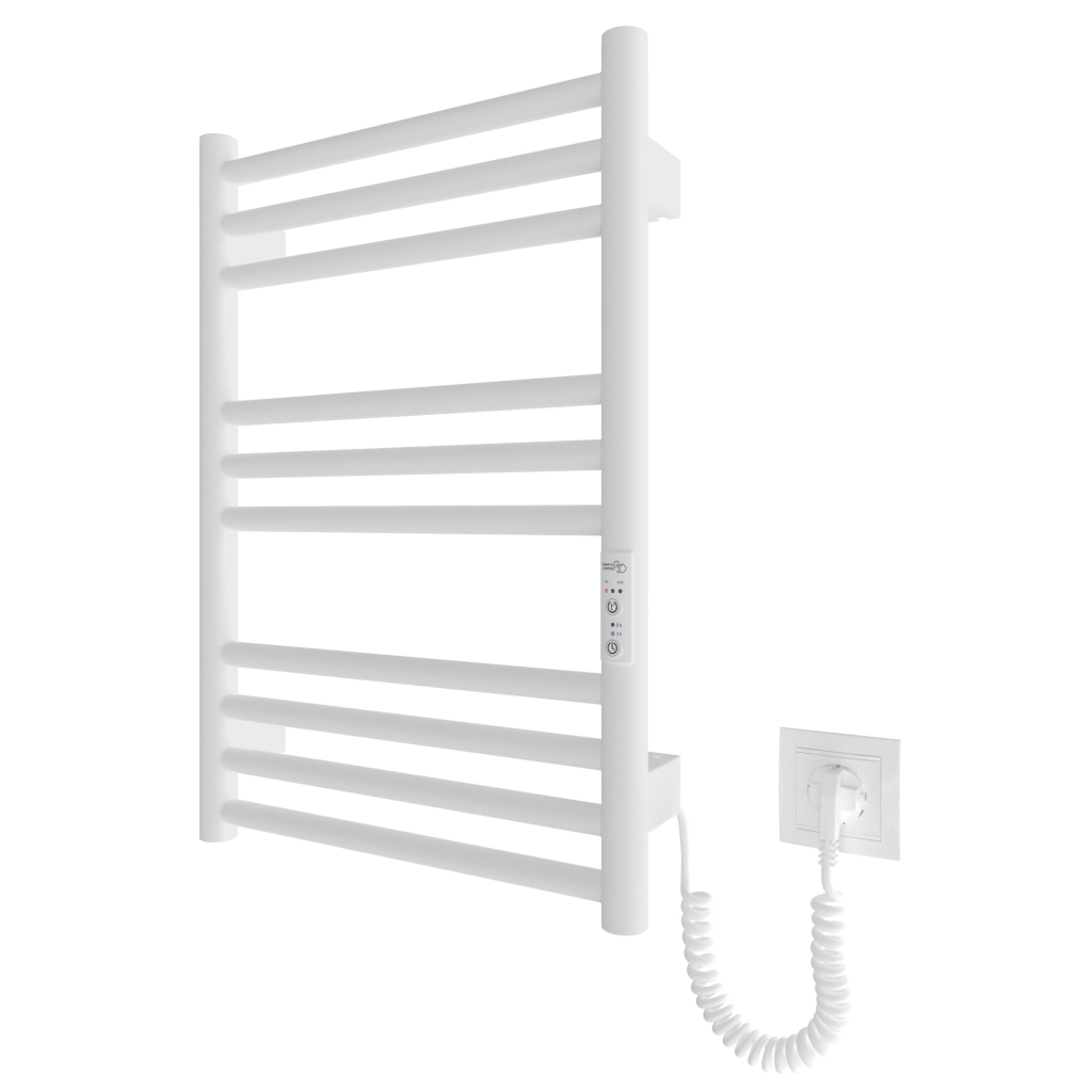 Електрична рушникосушарка HF Greenwich 570×530. Оснащена таймером-регулятором. Включає в себе приховане підключення. Має 10 ребер та стояки з круглої труби. Варіанти обробки: Чорний мат, Білий мат. Температурні режими таймера-регулятора: 40°C, 45°C, 50°C. Варіанти часу роботи: 3, 6 годин та постійний нагрів.