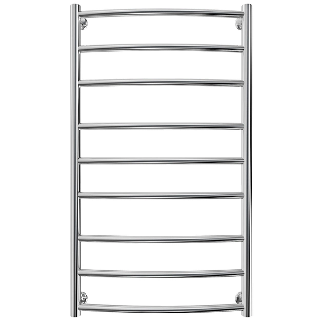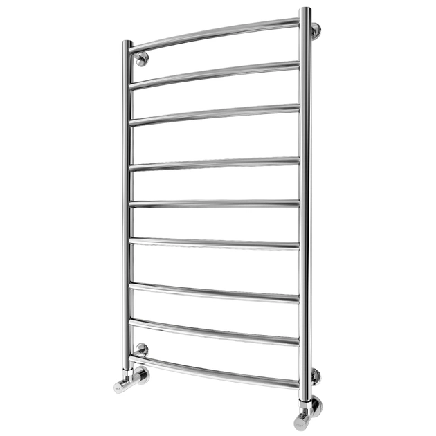 Рушникосушарка "Маріо" Класік 900х530/500. Розміри: висота - 900 мм, ширина - 530 мм, глибина 105 мм, міжцентрова відстань для підключення - 500 мм, діаметр підключення G1/2''. Варіанти підключення: нижнє, діагональне та бічне. Кількість ребер - 9, стояки з круглої труби. Виготовлена з полірованої нержавіючої сталі без хромування.